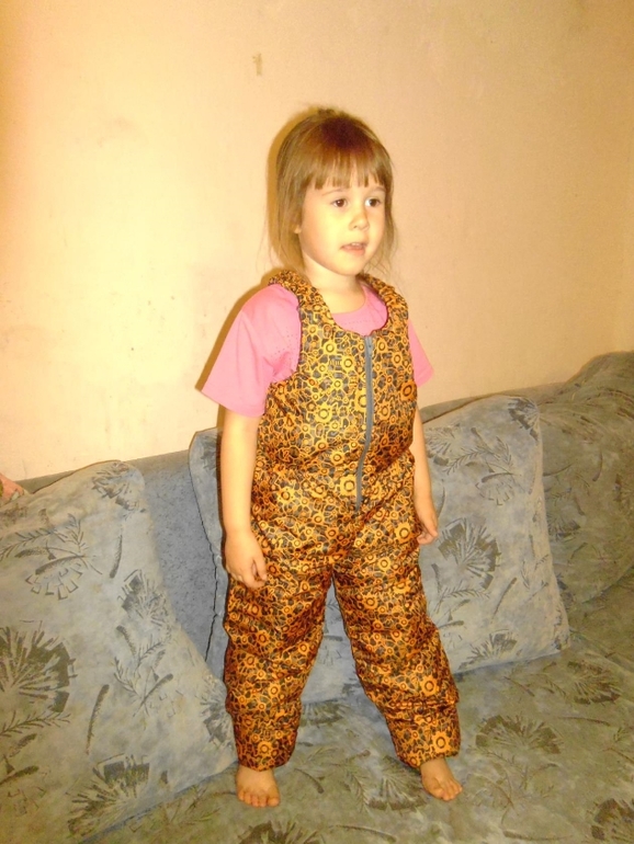 Шитье одежды, выкройки, ремонт одежды, шторы, швейные машины (уже приобретенные)Осенний полукомбинезон на мальчика рост 111. Взяла выкройку на 116 + 5 см на подгибку. Примеряет моя младшая,но ей великоват по росту.