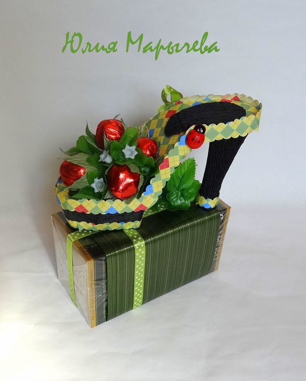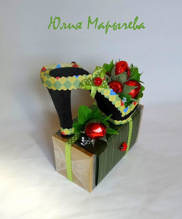 очень веселенькая туфелька с бумагой даже оригинальней...и чай интересно смотрится..теперь пора подарков,так что все в дело..