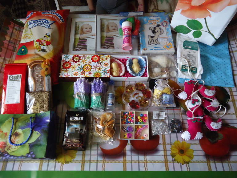 Ну конечно Катя одним мылом не обошлась- и мы опять с кучей приятных подарков!!!Чего тут только нет и моему хомяку и сладости и подарочки для всей семьи!!!