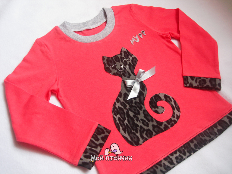 Коралловый лонгслив с леопардовой отделкой и глаМУРРРной кошечкой:)