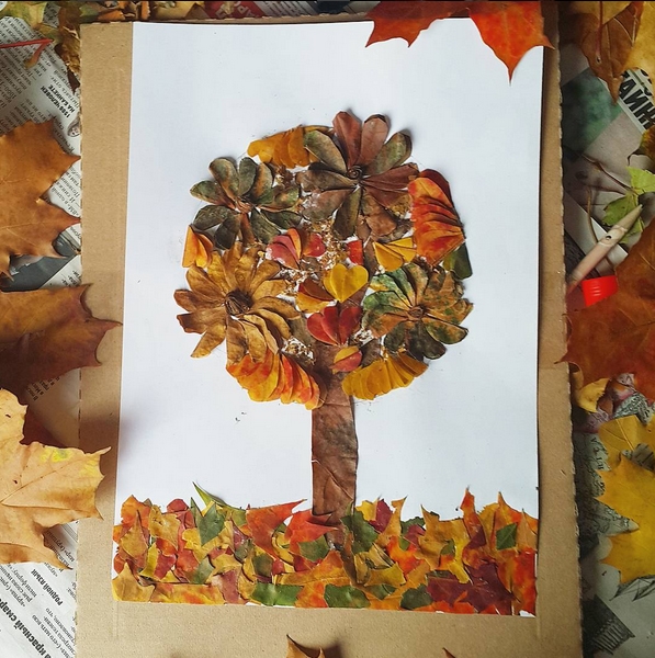 рисовала сама на глаз, увидела в интернете такое дерево, но из цветной бумаги, решили сделать из листиков.