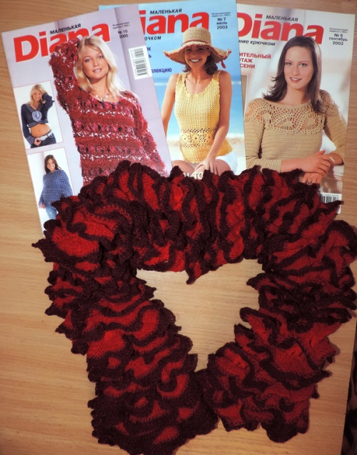 Три журнала Диана (вязание крючком) и шарфик ручной вязки для прохладных дней.