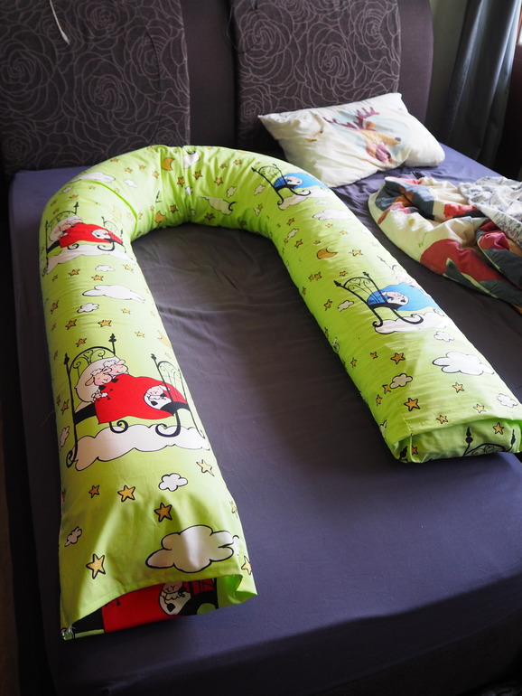 Я просто длинным валиком шила, а посередине не сильно набивала, что б легко складывалась, очень удобно. Муж то какой молодец что помог! )))))