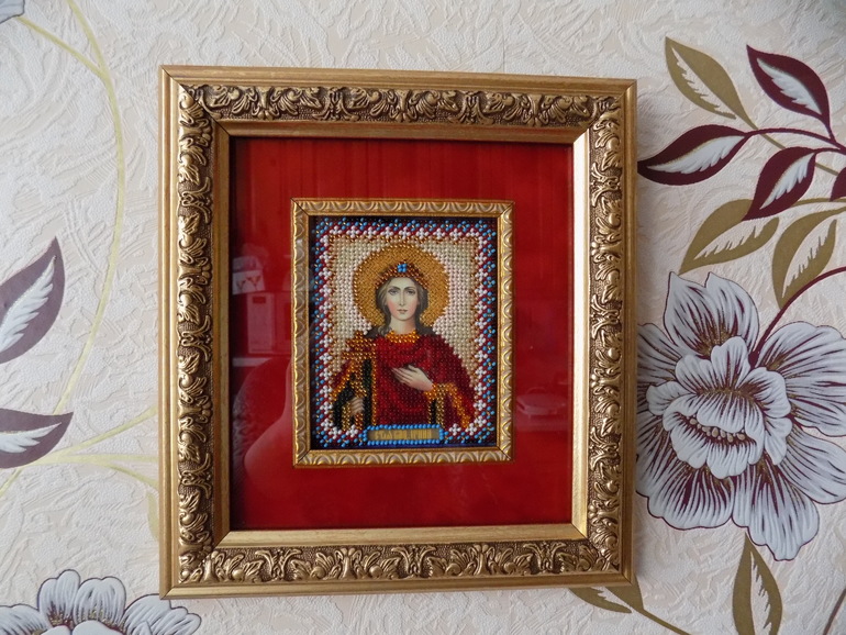 Не формат. Икона по размеру не дотягивала до рамы. Пришлось паспарту делать. В ширину по-моему была или 12 или 15 см а нужно 22. вот и пришлось паспарту делать. Да, не всем нравится эта икона! А зря... так переливалась на солнышке! Бисер сама подбирала... из своей коллекции.