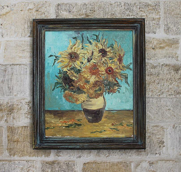 Маленькие подсолнухи Ван Гога, холст 25*30см. Формат маленький и цветочки немного прилипли друг к другу.. тяжело писать на таком формате.