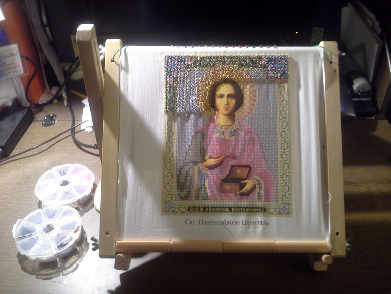 Мой рабочий уголок, запасы, инструментыНе могу обходиться без станка. Такую рамку не удержишь просто руками. Достаточно сложно, помоему!