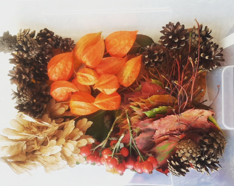 Поделки с детками.Насобирала я кучущу природного материала, коробку унесла в садик, для подготовительной группы старшего, они там тоже поделки и апликации делают, а из остатков собрала индивидуальные поделки, дети пришли с сада, добавили немного своих штрихов и вуаля)
