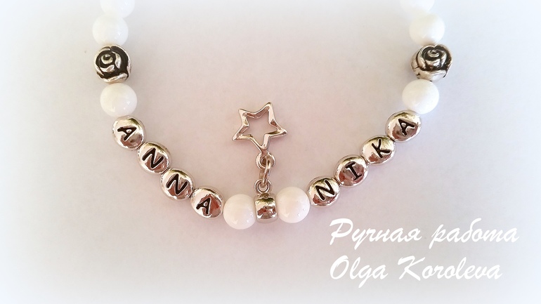 Бижутерия для слингомам. Слингобусы. Грызунки.Браслет из белого агата с именами любимых дочек.
