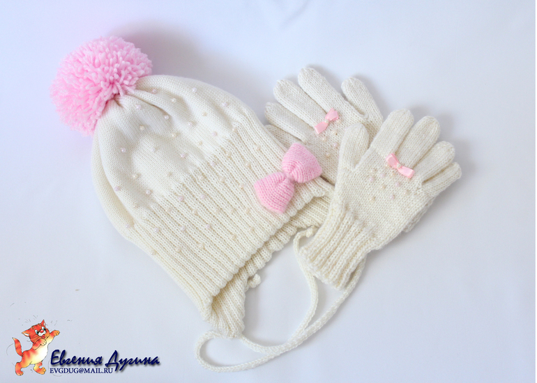 Шапочка связана на размер головы 50-52 см. Двойная. Пряжа Бриллиант от Вита. Перчатки в две нити связаны.