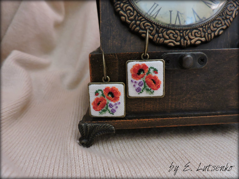 Серьги с маками (размером 2х2 см) разрабатывались под кулон: