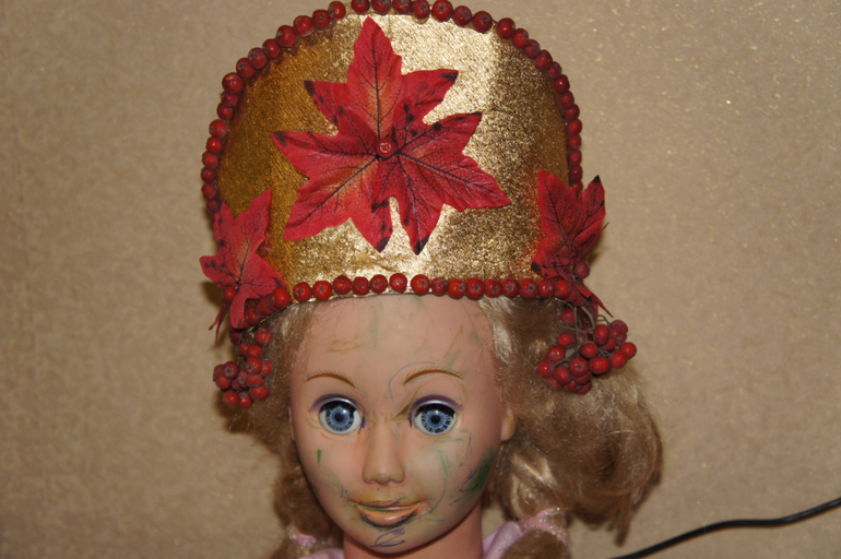 Изделия из бумаги, папье-маше, квиллинг.В этот раз почему-то на улице.... Моей дочери досталась роль "барышни - торговки" на ярмарке. Было велено смастерить кокошник, то в общем получилось вполне себе сносно))). я довольна результатом