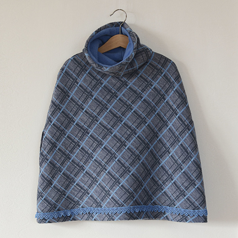 Вот такой кейп или пончо (как кому нравится) сшился у меня сегодня. Основа - плотная трикотажная юбка, досталась мне от сестры.