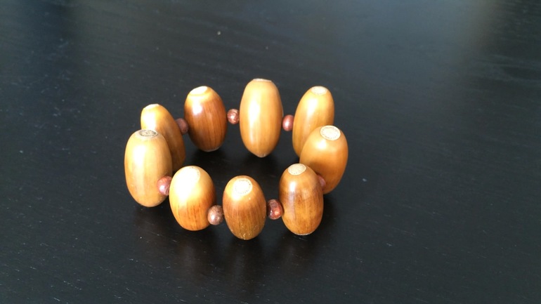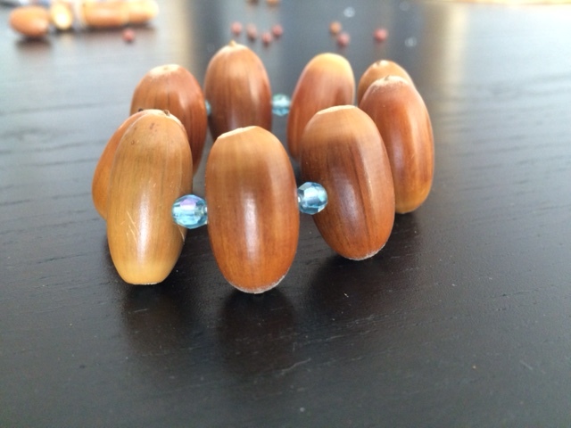 Обычно я делаю поделки в садик дочке из природного материала, но в этом году такого задания не поступило. Но не лежать же желудям без дела. Мне пришла идея попробовать сделать браслет. Не думала, что так порадует результат, а он действительно порадовал! Фотки: