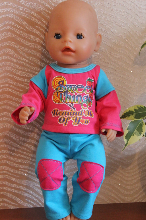 А мне понравилось куколке шить, вроде у дочки всё есть, да и этот лоскут по углам лежит, хоть куда-то его применить. Вот куклам помельче я бы не рискнула шить, а Бэбику этому нравится.