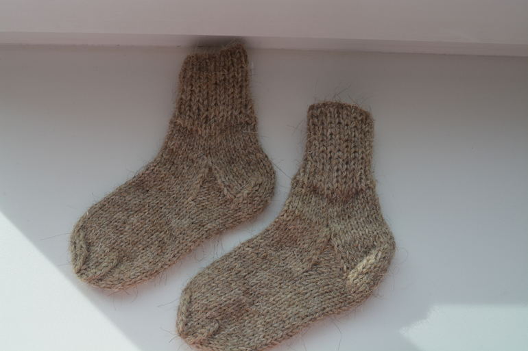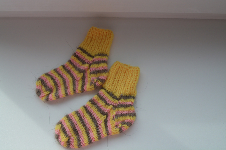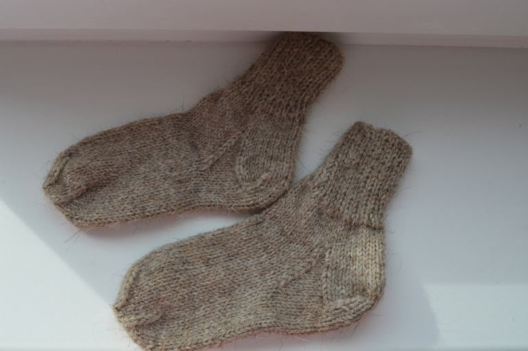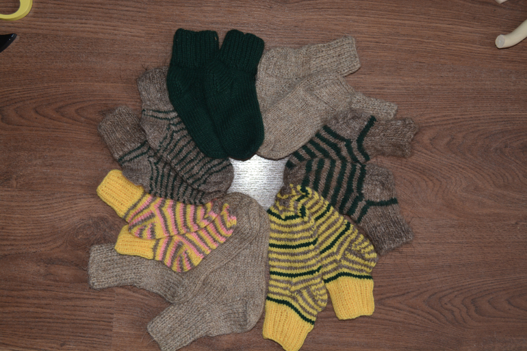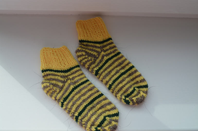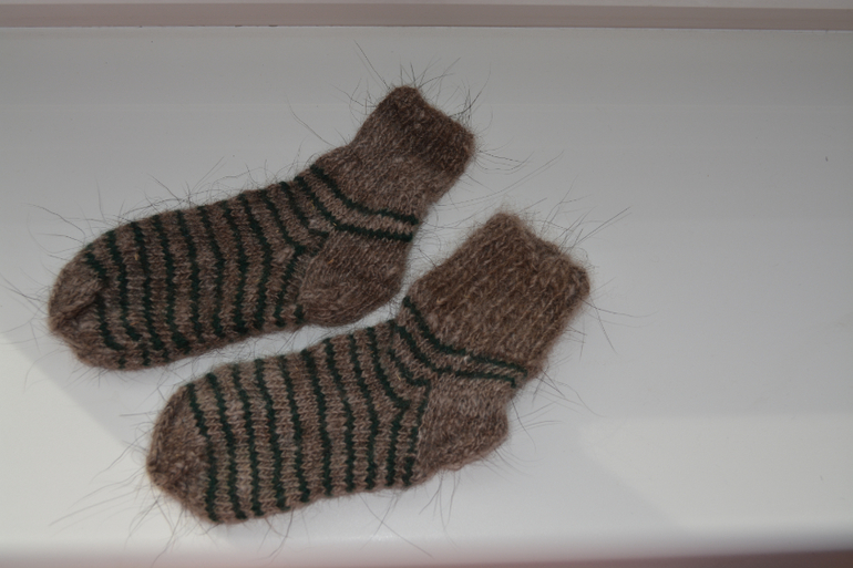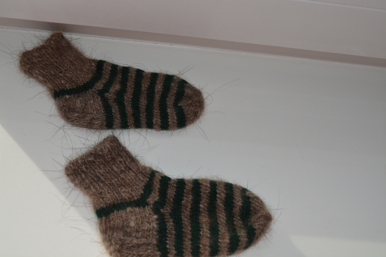 А эти из настоящего козьего пуха, а полосочки кашемировые. Они самые теплые