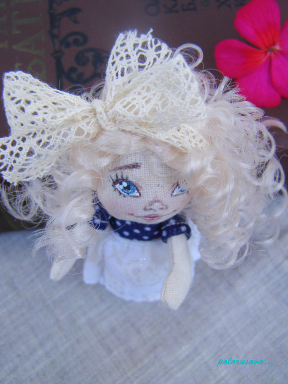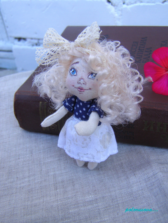Кукольный мир - человекоподобные куклыПомимо обезьяноброшей с моими куколками отправляются и маленькие крошечные девчонки с ладошку.. размерчик обычно от 6 до 8см. Покажу всех разом)). Также как и все куколки сшиты из небеленого хлопка...одежка из хлопка, льна, хлопкового трикотажа и хлопковых кружев. Крепление-безопасная булавка под бронзу). Личико расписано акрилом и маслом. Несколько кукол под катом..много фото)
