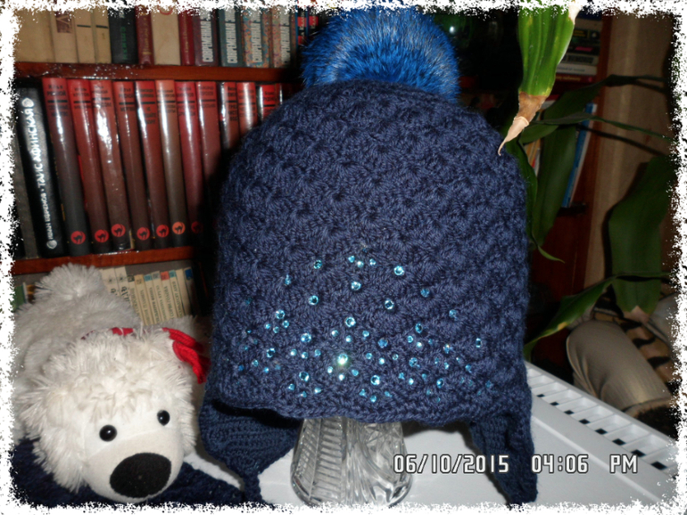 Шапку украсила стразами Своровски. Фото не передает блеска страз - горят огнем. Помпон не смогла подобрать, поэтому купила из кролика в магазине рукоделия.