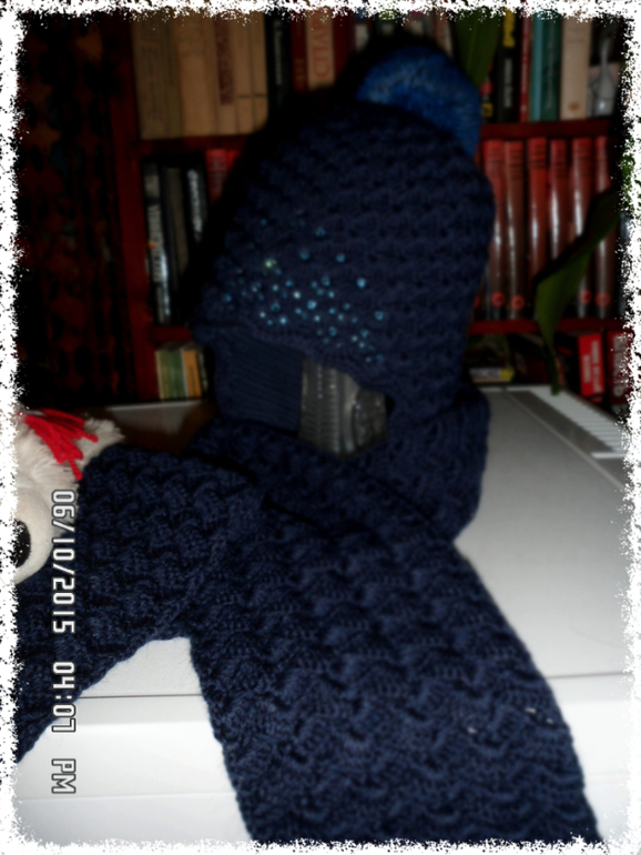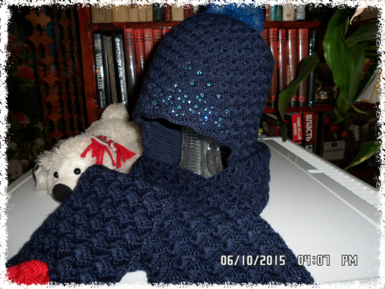 Это шарф. Решила попробовать связать розочки, ну и "примостила" их на шарфик (можно и убрать).