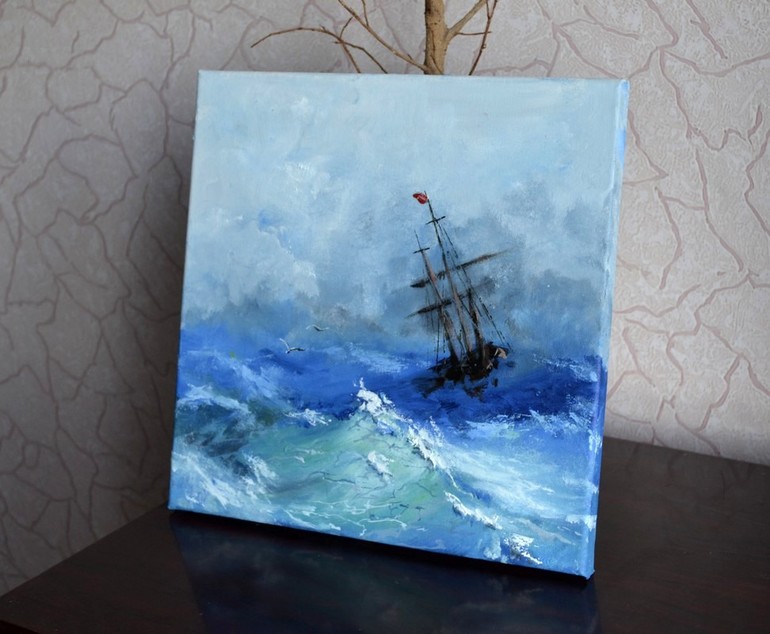 Живопись, точечная росписьПохвастаюсь немножко, какую картину нарисовала для себя (да-да, в кой-то веке для себя и в кой-то веке довольна))) Вдохновившись работами великого мариниста Айвазовского на холсте 30*30 маслом создала вот такую бурю.
