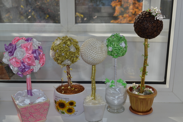 Хочу показать вам что у меня получилось, скажу сразу я только учусь, и буду рада дельным советам! к критике отношусь нормально))) первым сделала топиарий из кофейных зерен. Этот топиарий оказался самым трудным для меня, в том плане что требовалось больше времени и главное усидчивости при наклеивании зерен на шар... Клеила в два слоя, вот что получилось у меня, работой своей я осталась довольна)))
