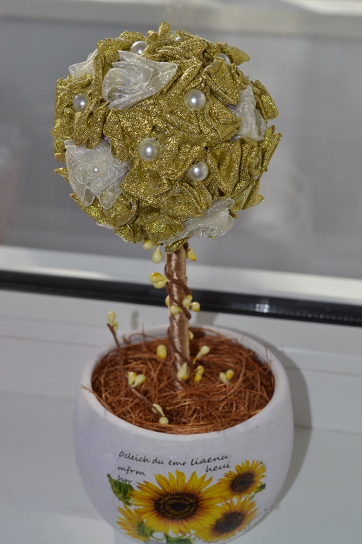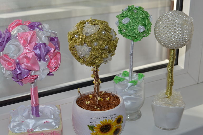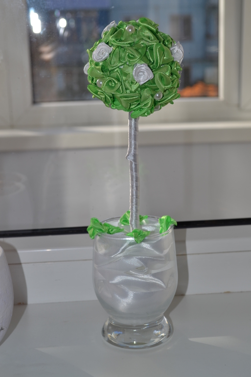 А на этом топиарии уже приноровилась и научилась и все цветочки делала самостоятельно, красивое сочетание цветов, нежное деревце получилось.