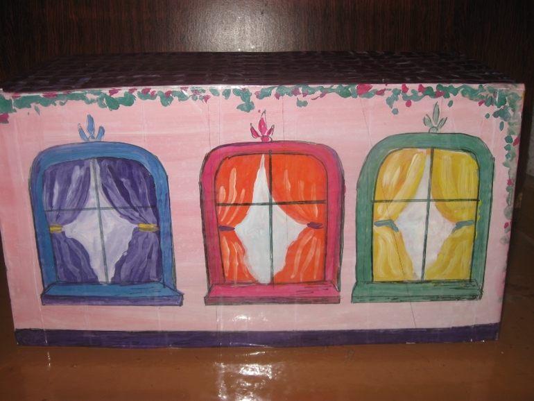 Решила из коробки сделать домик для дочкиных зверушек. Вот что вышло. Фото под кат