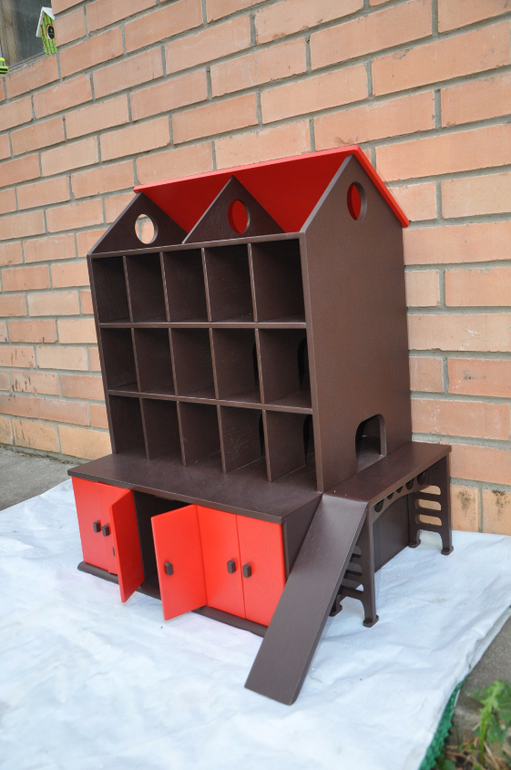 Работа с деревомВот такой "Домик-гараж" подарила одна заботливая мамочка своим двум маленьким сыновьям)). В таких "апартаментах" можно легко разместить хорошую коллекцию мини автомобилей, а в трех нижних боксах даже небольшие грузовики, например... Пандус можно установить как с левой так и с правой стороны. Размеры "домика" : высота 70см, длина 50см + пандус 8см, ширина (глубина) 30см, ширина основания 42см. Под катом еще фото.