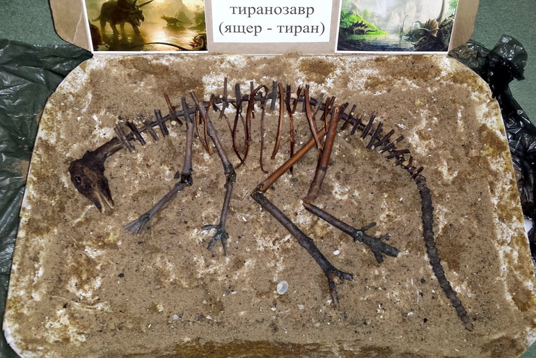 Спасибо! Фиксировали на пластилин, его даже немного видно, несмотря на песок. С клеем бы дольше провозились, и рёбра не смогли бы так объемно зафиксировать. К тому же, пластилин позволил самостоятельно собрать всю поделку шестилетнему ребёнку.