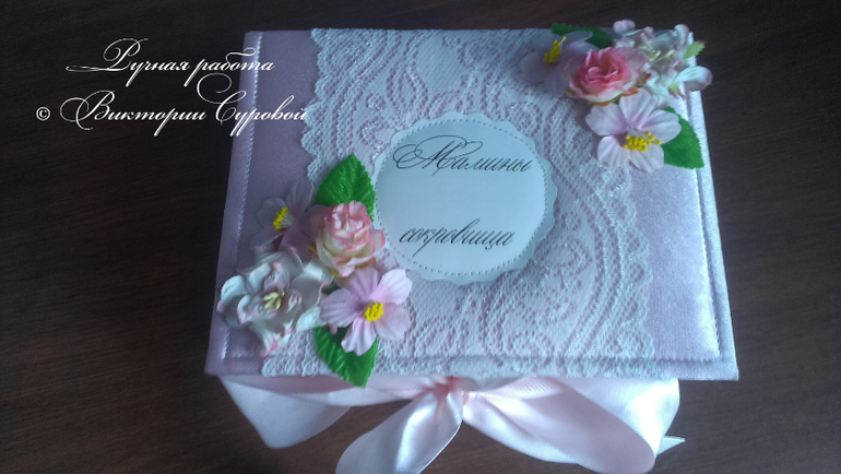СкрапбукингДевочки. вот моя новая сокровищница для малышки Алисы. Выполнена в нежно-розовых тонах. Коробочка размером 14*20 см. и высота 12 см. Внизу выдвигающийся ящичек. Сделана из плотного переплетного картона, обтянута коробочка синтепоном и тканью. украшена кружевом, цветами, лентами.![]()