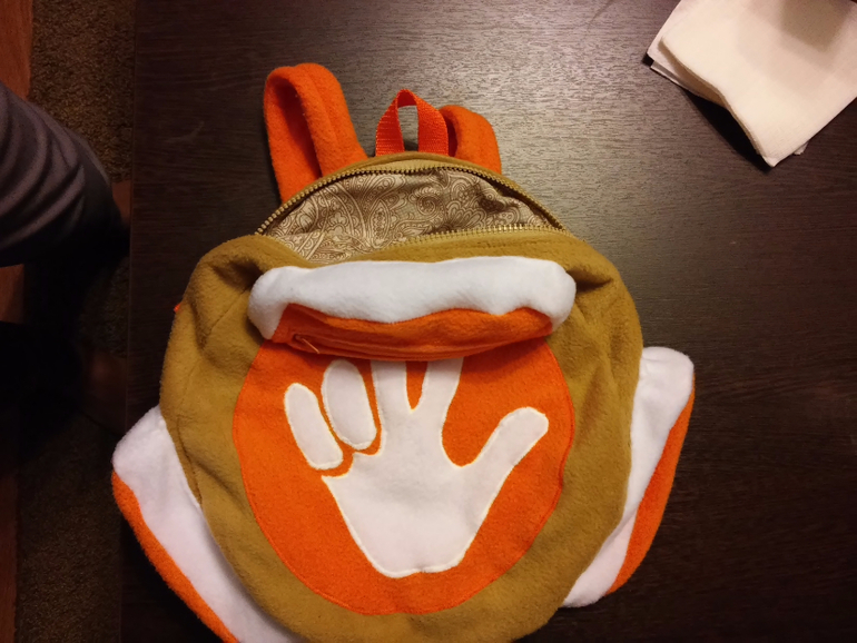Попросили, на день рожденья ребенка сшить рюкзачок помогатор. Ткани использовались флис и на подклад х/б. На мое удивление, рюкзак получился очень вместителен. Хозяйка рюкзачка была очень довольна и весь вечер его не снимала