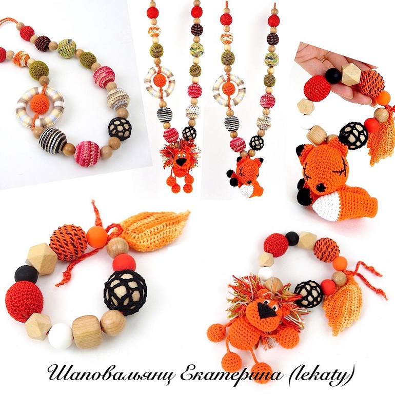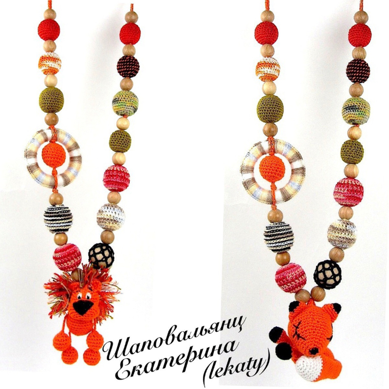 Бижутерия для слингомам. Слингобусы. Грызунки.Связался на заказ вот такой комплектик для малыша из бус, грызунка + 2 съемные игрушки-погремушки... Можно по-разному комбинировать игрушки и получить: 3 пары бус - без игрушек, с львенком или лисенком и 3 грызунка, так же без игрушек или с одной на выбор)))