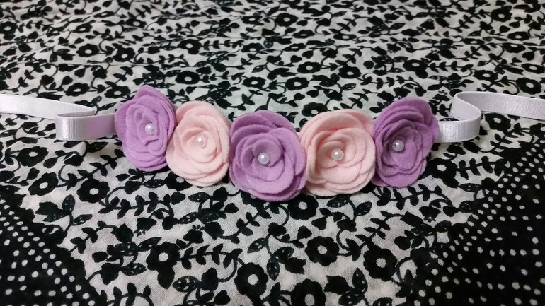 Цветочки просто сделать - на мягком фетре нарисовать круг (я обводила чашку обычную) и вырезать форму листочков - сначала по внешнему кругу, потом по спирали к середине. Закрутить, проклеить, сделать основание и пришить к резинке. Посмотрите в интернете Мк по цветам из фетра - на иллюстрациях проще понять)
