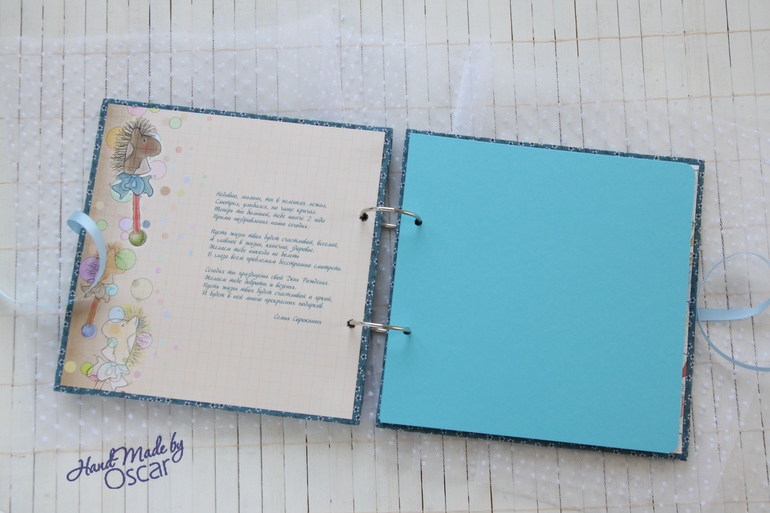 Внутри странички из плотного картона для фото и листы такого же оттенка для пожеланий