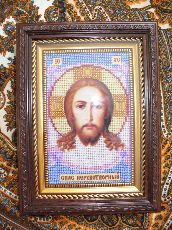 "Спас Нерукотворный" вышила себе. Очень нравится эта икона, а еще хочу "Покров Богородицы" вышить.