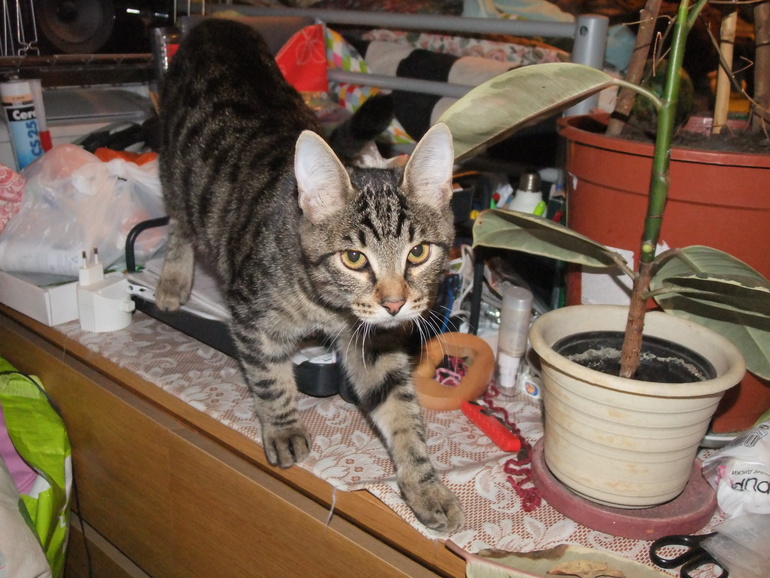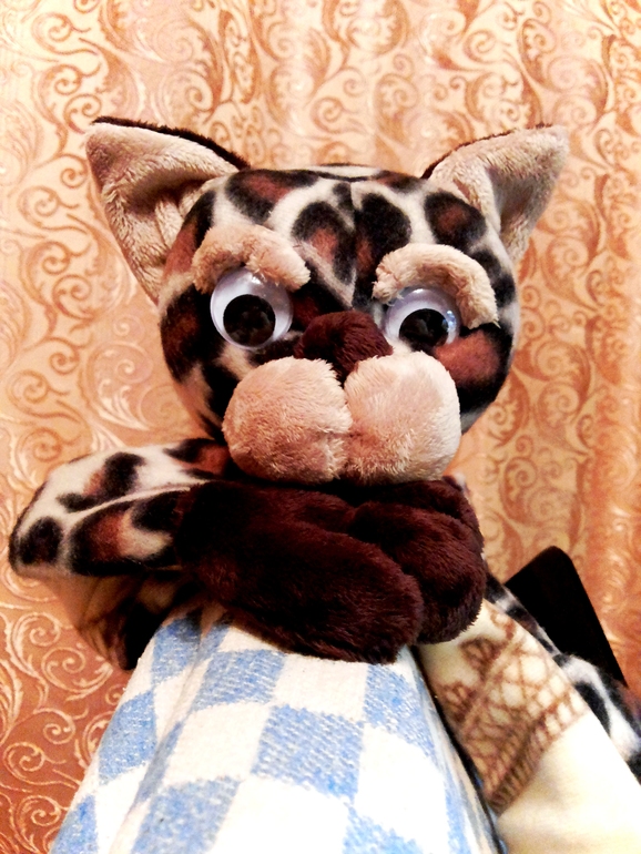 Ужасно капризный котик получился как в плане его пошива - я про мордочку - так и в плане его фотографирования: морда получается грустная. Но это только на фото, хотя вон на фотке ниже все-таки удалось мне "поймать" его нагло-хулиганское выражение)))