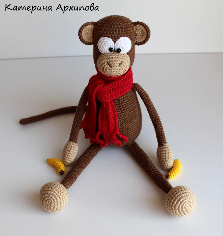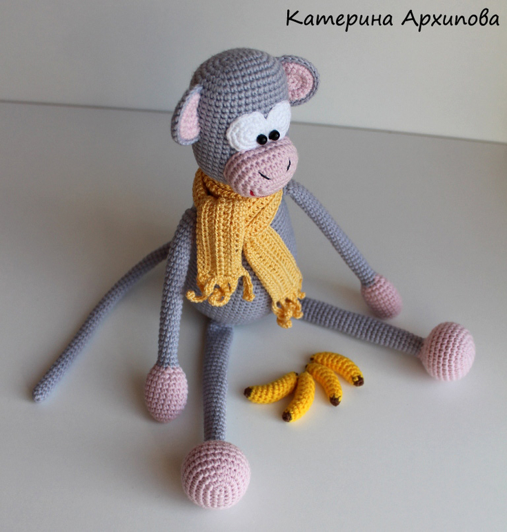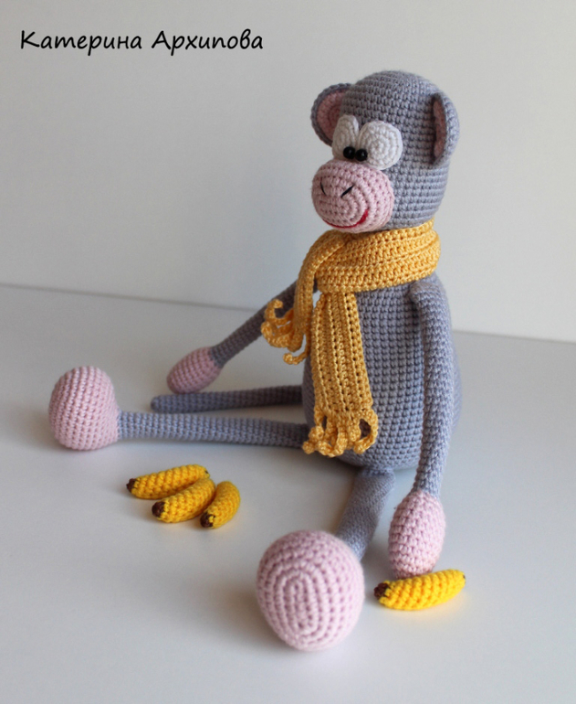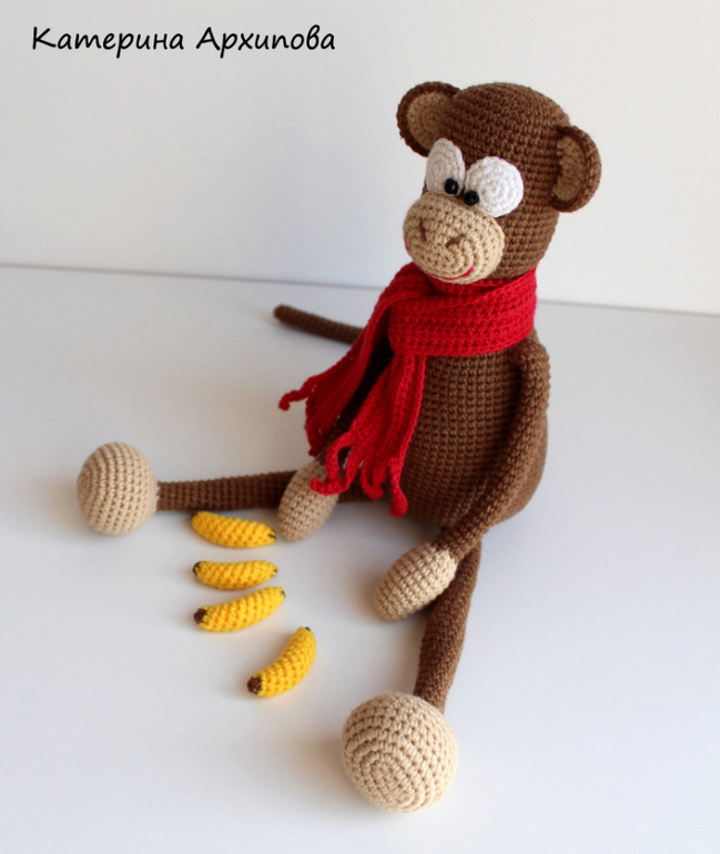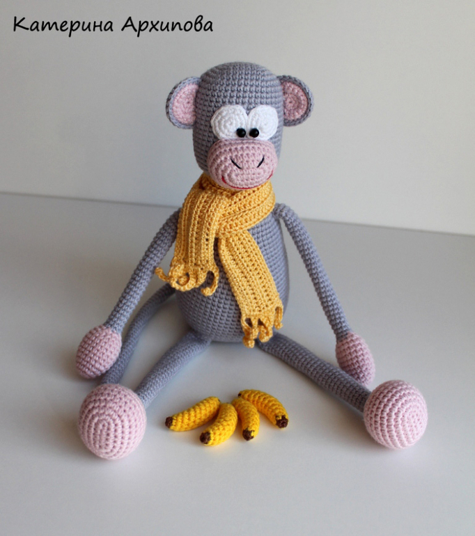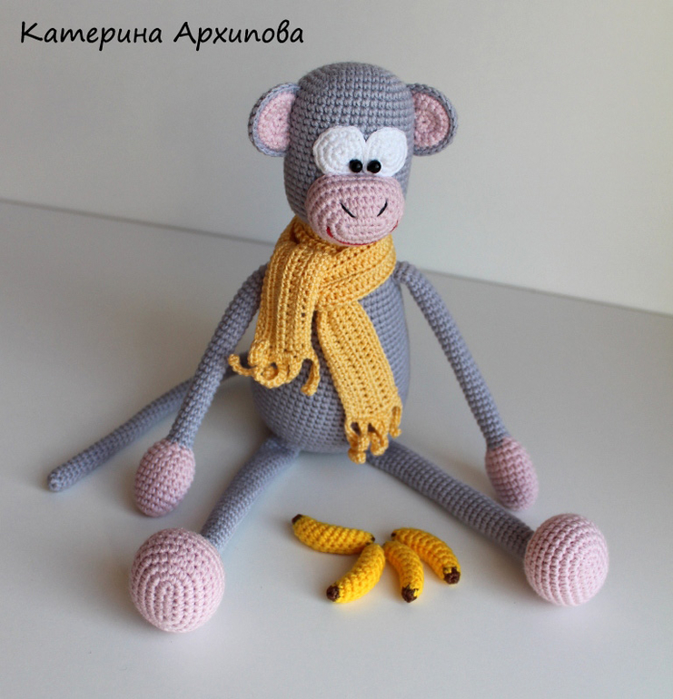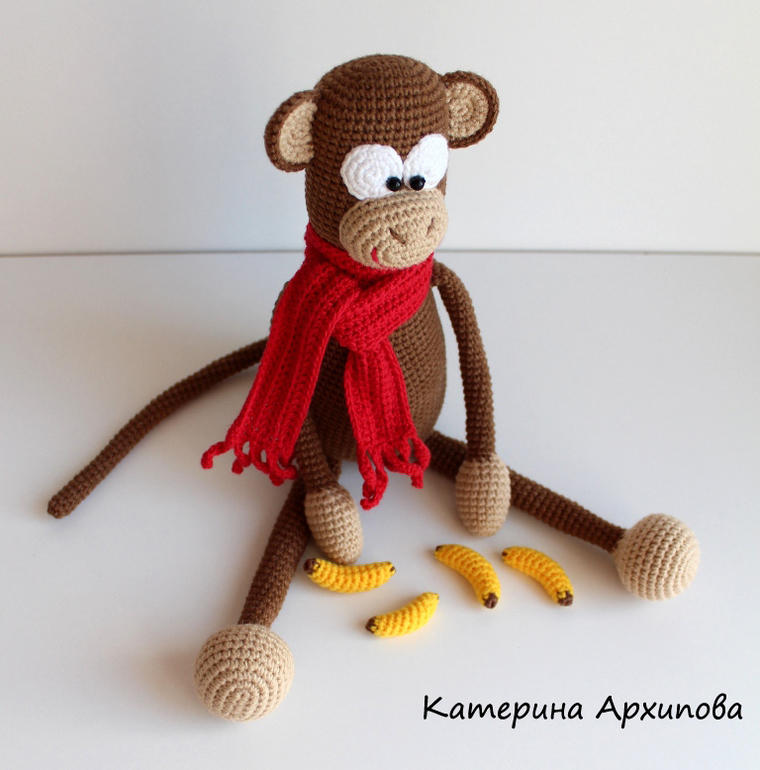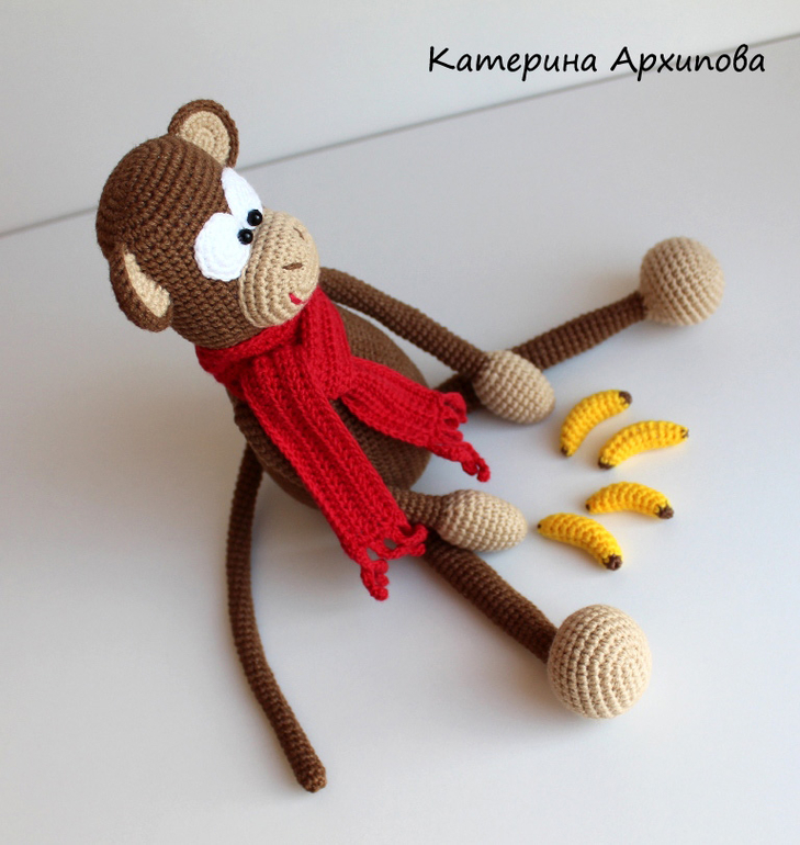 Катерина, суперские игрушки получились! Как мне нравятся твои ровные петельки и рядочки! Мартышки меня рассмешили, вернее бананы. Особенно 2 фото("Что это мне тут положили?")