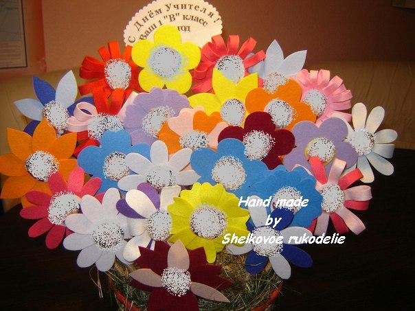 Сегодня хочу вам показать Букет, сделанный ко дню учителя нашей дорогой Елене Алексеевне. Сразу оговорюсь, фотографии намерено заретушировала, чтобы не было претензий со стороны родителей)))