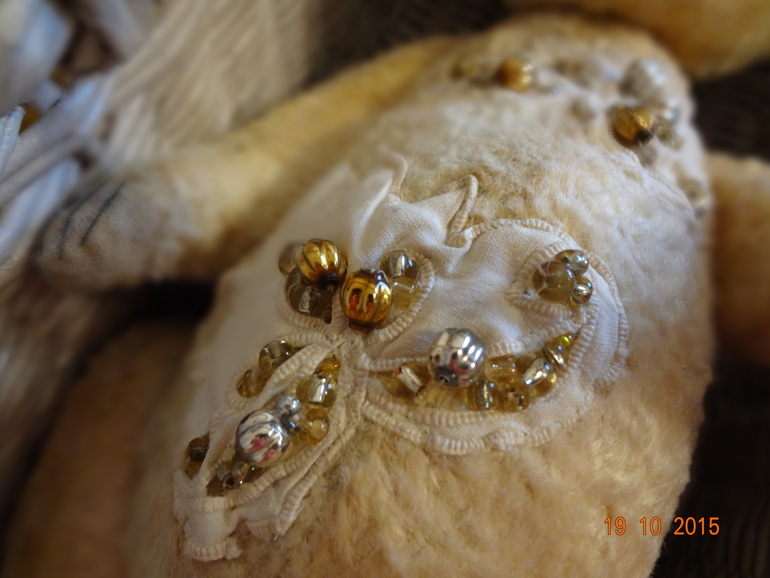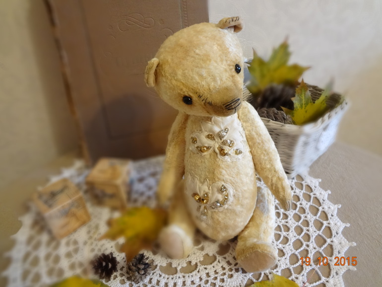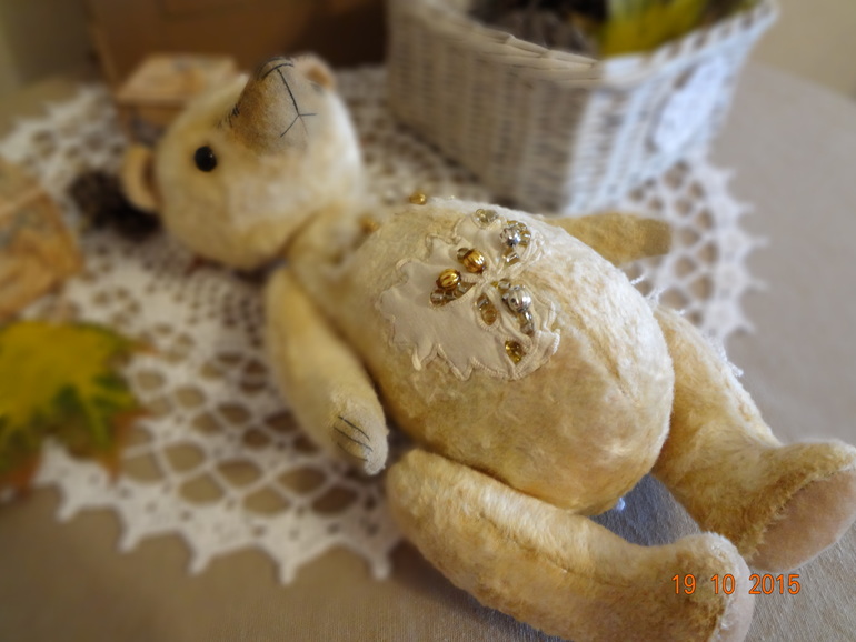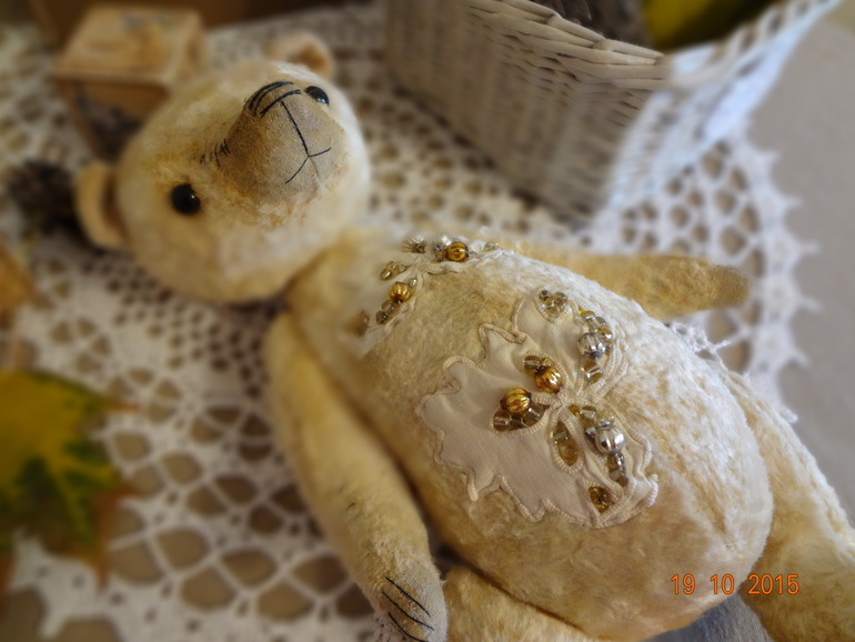 Игрушечный мир - животныеМишка сшит из винтажного плюша,набит плотненько опилочками,утяжелен стальным гранулятом,тяжеленький. Шплинтовое крепление,голова покачивается)) Глазки стеклянные. Пузико у мишкиукрашено винтажным шитьем ручной работы и бисером,частично с винтажными стеклянными бусинами. Мишка получился такой старенький,дополнительно тонирован масляными красками,немного декоративной штопки. Сшит полностью вручную,с большой любовью и теплом. Авторская выкройка.Единственный экземпляр.