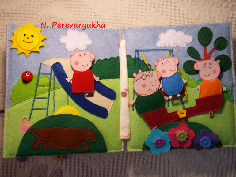 Наталья, суперская книжка! Все продумано до мелочей! Подскажите, сами свинки из какого материала? Вроде это не фетр? И чем мордашки нарисованы?