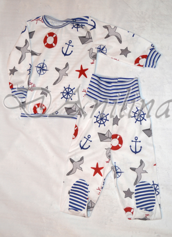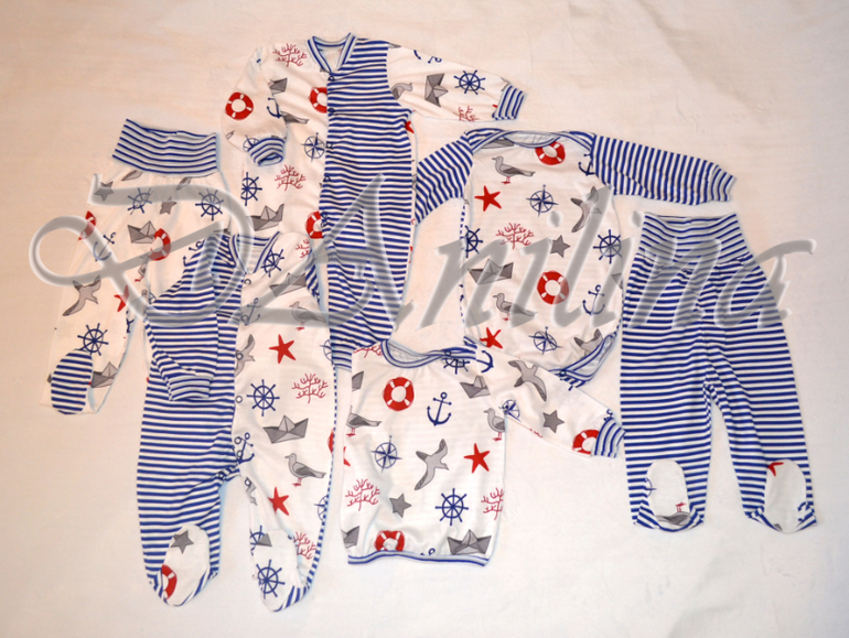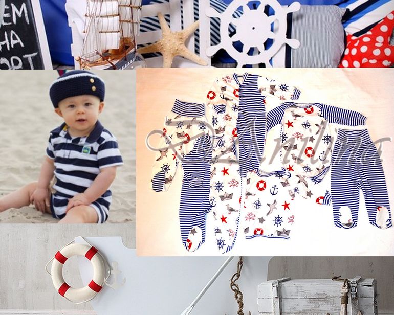 Пошился большой комплект для малыша в морском стиле. Обожаю я морскую тематику, почему-то)))