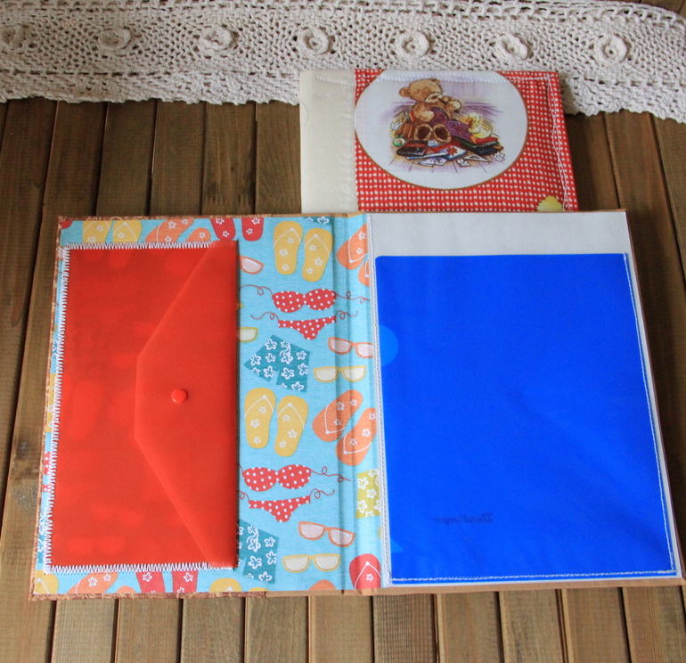 Вот такие пухленькие холдеры для документов - детских отдельно и взрослых отдельно. Внутри очень функционально, как и снаружи - никакой декор не повредится от ношения в сумке.