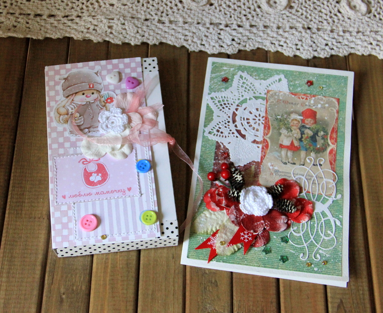 Еще рукодельные радости - это для мамы моей. Открытка просто мммм, очень нравится. А в коробочке мыло "Мама", думаю на новый год припасти))