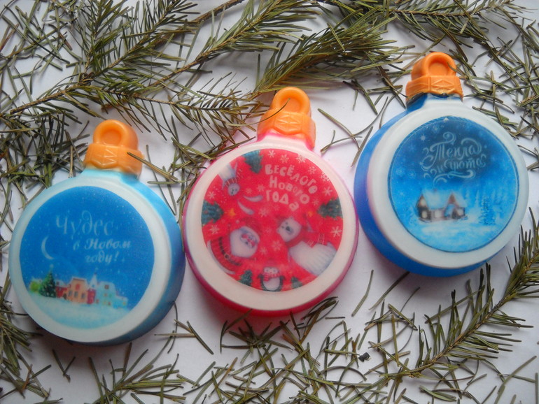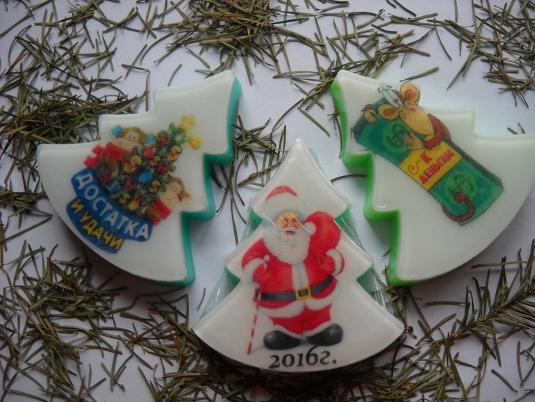 Мыло и косметика своими рукамиХотелось бы показать вам свои работы с водорастворимыми картинками. Новый год приближается соответственно новогодняя тематика.
