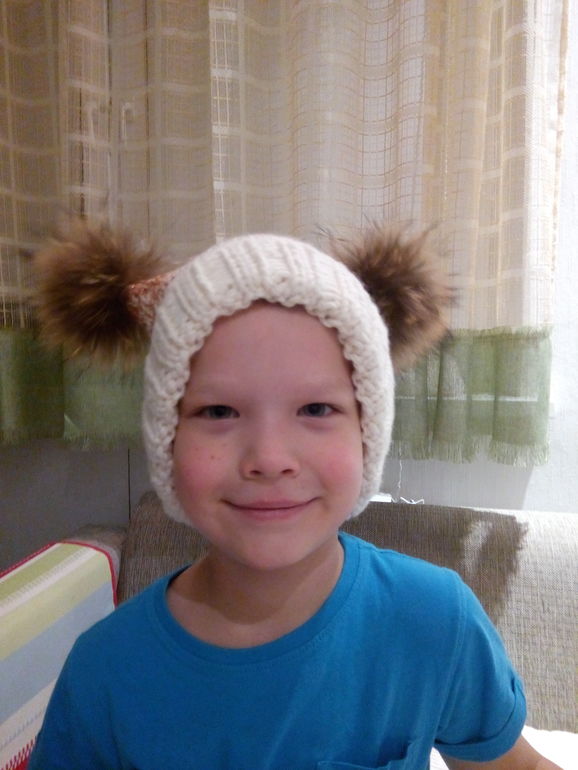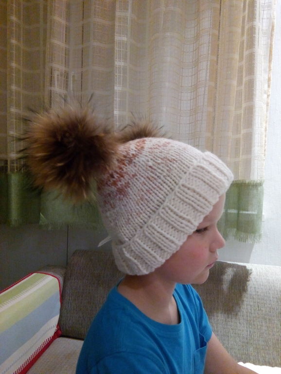Спасибо. Очень просто. Я связала начало белой в 4 нитки, потом постепенно одну белую заменяла на рыжую, провязывала несколько рядов, потом ещё одну булую на рыжую и так пока не арлучилась только рыжая нить.