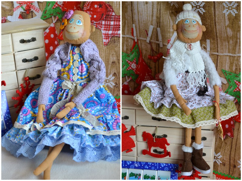 Ой, какие же чудесные!! Радостные, добрые мордахи! Мне больше нра та, что в платье - романтичная. Но у той, что в шубке, прикольные очень боты!!! Супер получилось!