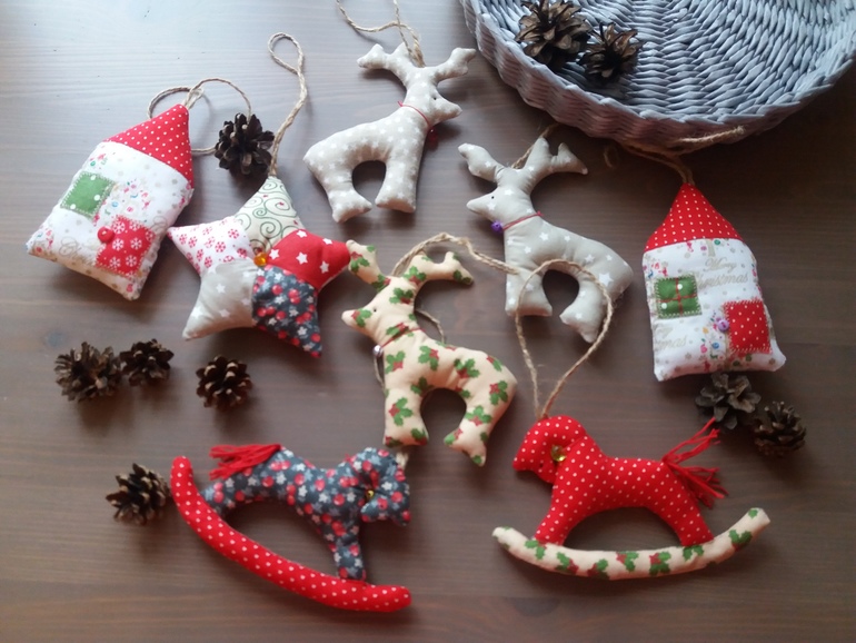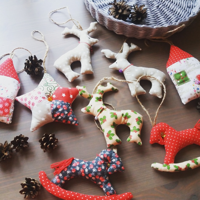 Декор, витражи.Еще одна порция игрушек из ткани. Сшиты из немецкого хлопка, наполнение синтепух.