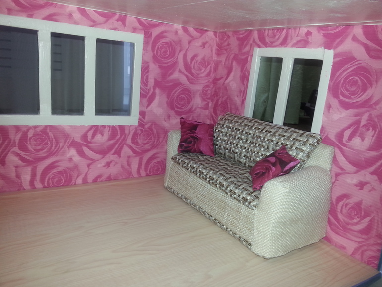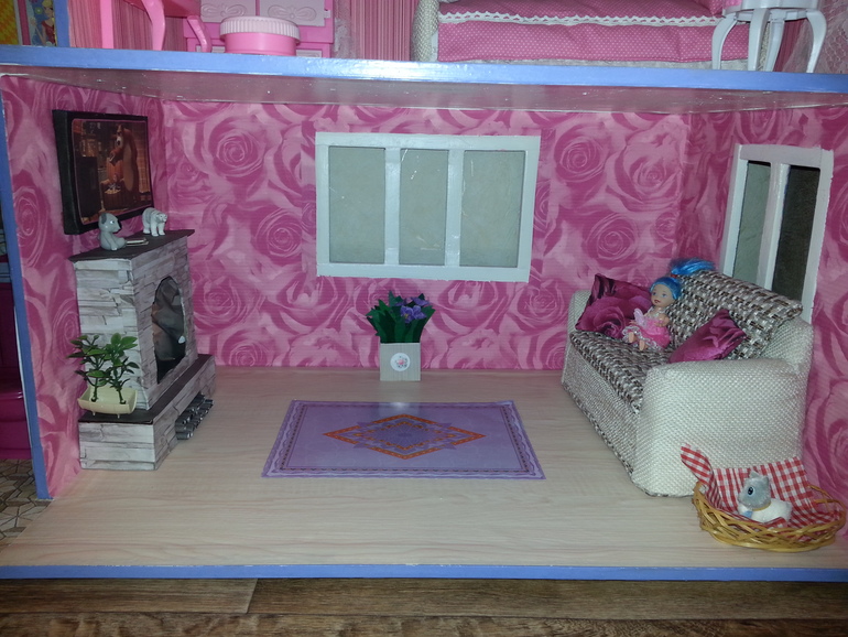 Далее будет ОЧЕНЬ много фото самого домика и мебели. Диван, камин, кровать и стол со стульями тоже самодельные)))