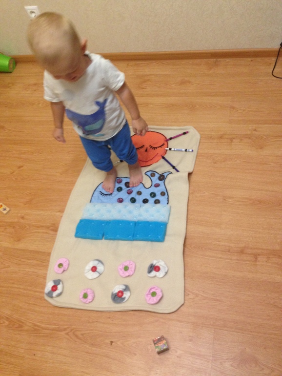 Больная голова рукам покоя не дает! Соорудилась за выходные массажная Дорожка в детский сад. Сын тестирует!