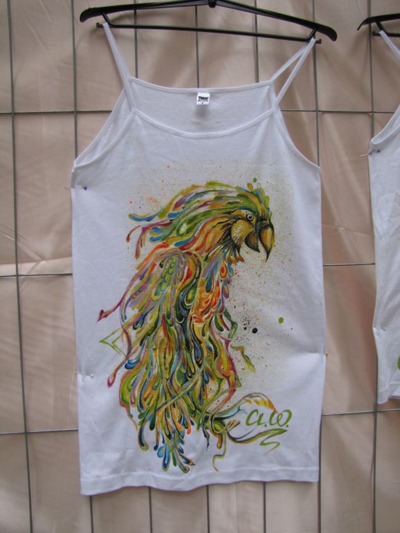 Роспись по ткани, батикВ майке можно смело заниматься любыми творческими работами, даже красить из краскопульта)))) Ибо фон подразумевает, что лишнее пятно будет не очень заметно.