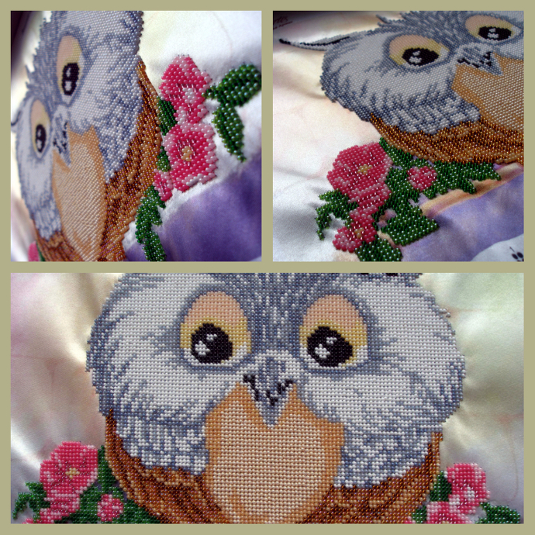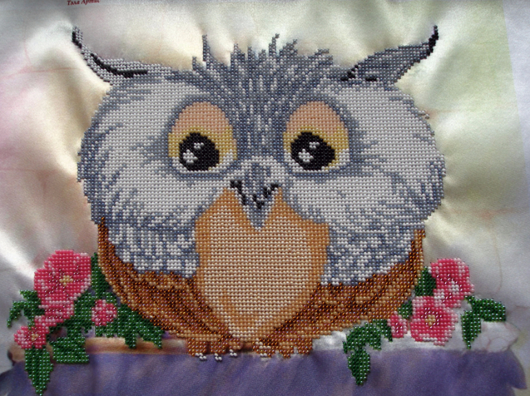 Привет! У меня новинка Весёлый совёнок. Это первый отшив картины. Я выиграла эту схемку, в конкурсе. который организовывал производитель схем ТМ Тэла Артис, по моему дизайну разработали эту замечательную схемку.